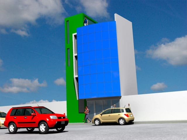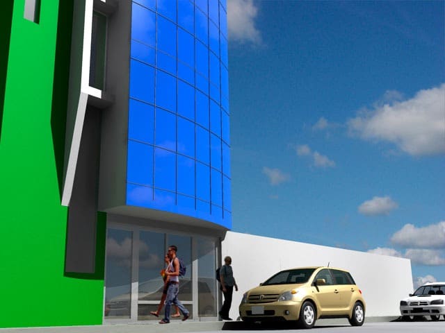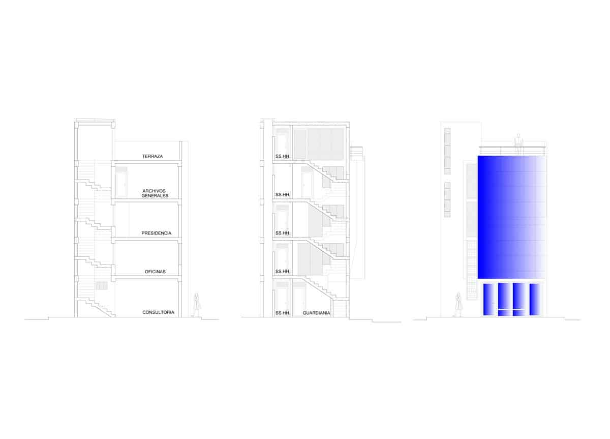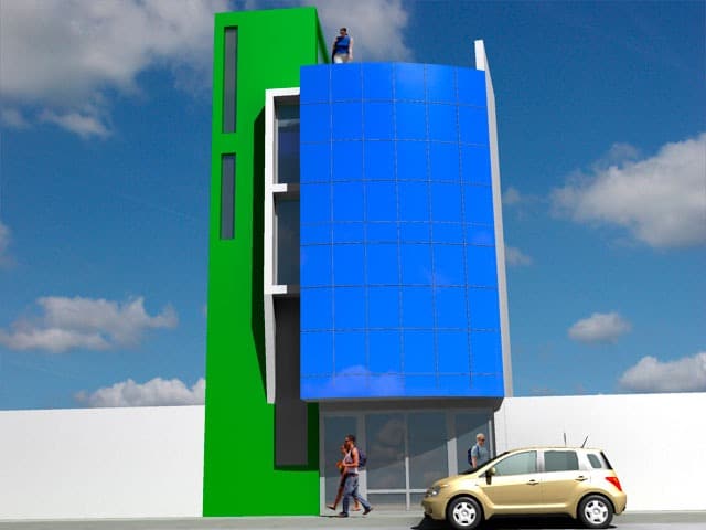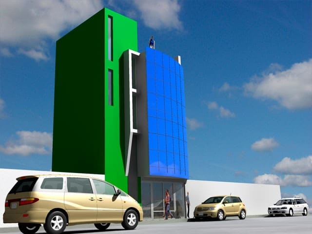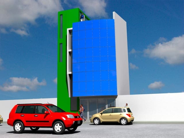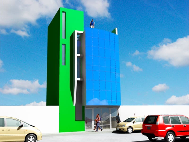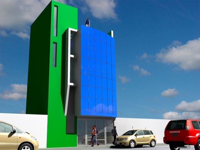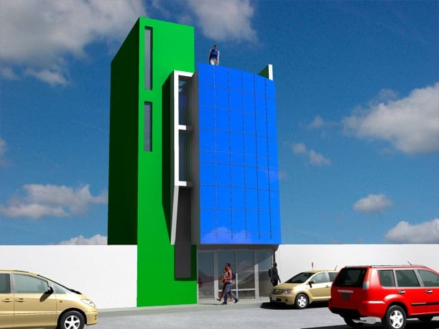 El proyecto fue encargado para poder realizar un edificio de oficinas para la ONG KANSAS el cual disponía de un pequeño lote de 33.000 M2, cuyo solución fue el aprovechar al máximo el espacio.