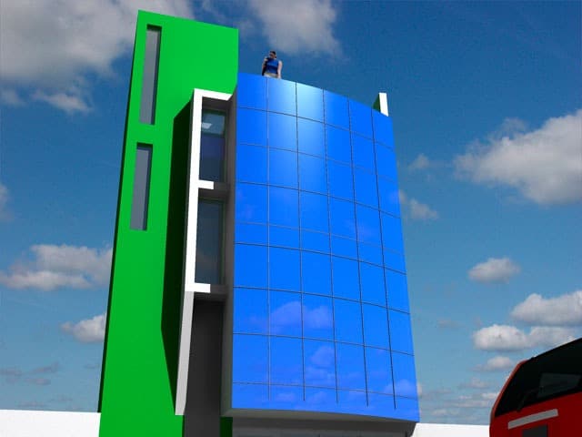 El edificio esta concebido de tal manera que  contrasta la transparencia a través del muro cortina y la masa acompañada de muros ciegos los cuales dan como resultado un edificio impresionante, además del pequeño área para poder construir este hecho arquitectónico.