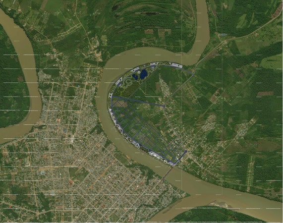 El planteamiento del proyecto desarrolla a lo largo de la margen izquierda del rio Madre de Dios en un total de 4.5 km.