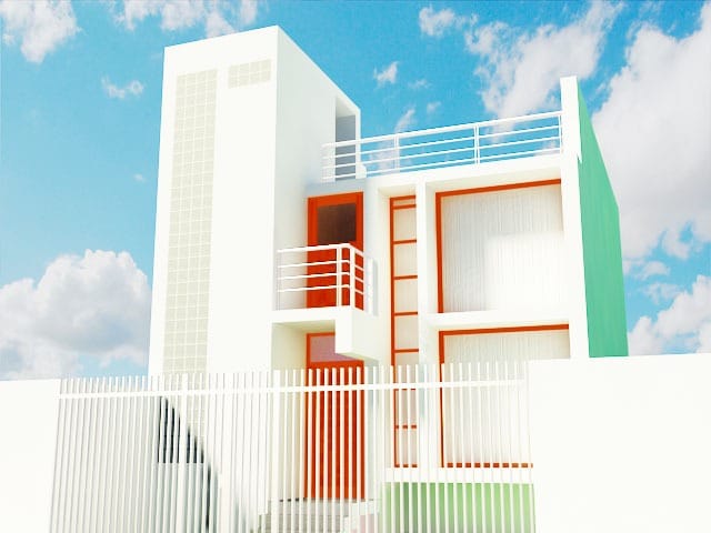 El edificio esta orientado al Este, por las mañanas recibe los primeros rayos del sol que llegan directamente a los dormitorios y la sala comedor, se genero amplios vanos que permitieran el acceso de luz al interior de la vivienda.
