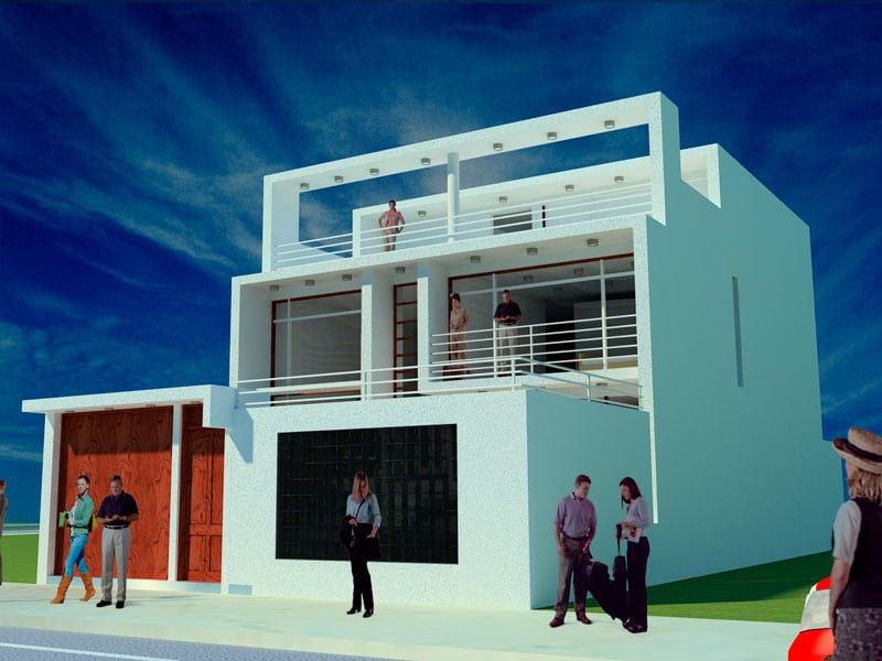 El encargo consistía en proyectar una vivienda unifamiliar con la zona social en le primer piso, dormitorios y ambientes de estudios en el segundo y tercer piso, rematando con una terraza al aire libre hacia la fachada de la edificación.