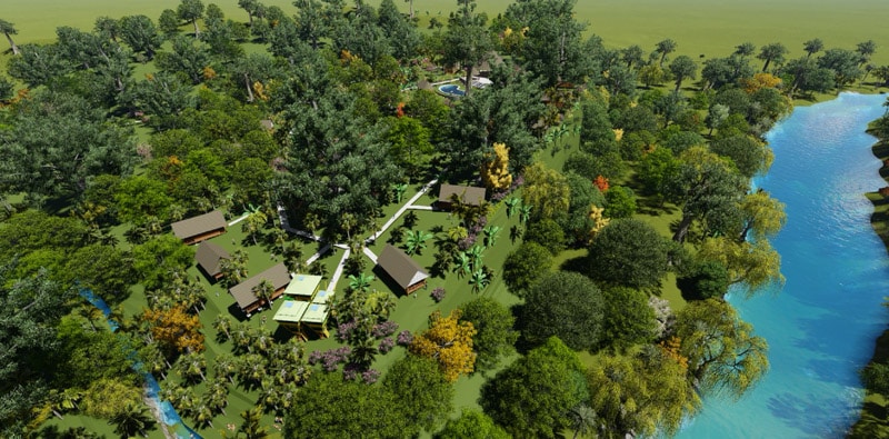 El encargo consistía en generar un espacio de interconexión con la naturaleza y brindar mediante el proyecto un lugar para el descanso y recreación turística en el departamento de Madre de Dios.
